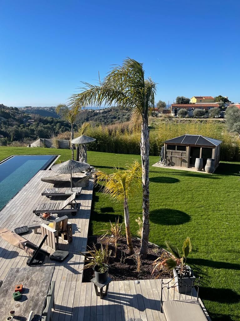 Het kijkt uit over de zee, vrij 180 graden uitzicht op het zuiden met de Cap d'Antibes in zicht.